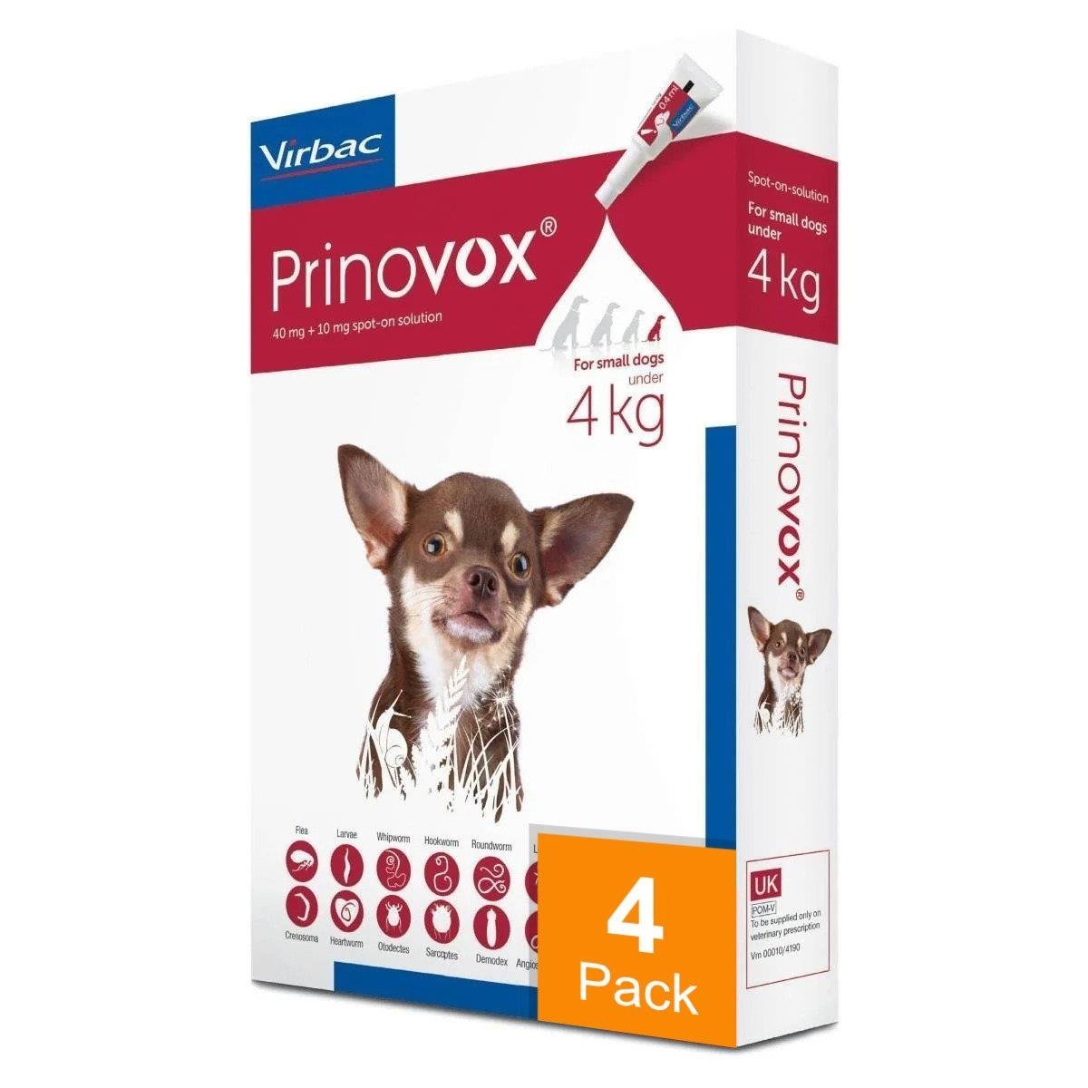 Prinovox for Small Dogs Under 9 lbs (4 kg) – 4 Pack (Red)